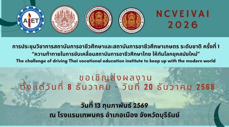 !!!ด่วน!!! ขอเชิญส่งผลงาน ในงานประชุมวิชาการสถาบันการอาชีวศึกษาและสถาบันการอาชีวศึกษาเกษตร ระดับชาติ ครั้งที่ 1 “ความท้าทายในการขับเคลื่อนสถาบันการอาชีวศึกษาไทย ให้ทันโลกยุคสมัยใหม่” The challenge of driving Thai vocational education institute to keep up with the modern world (รายละเอียด คลิ๊ก )